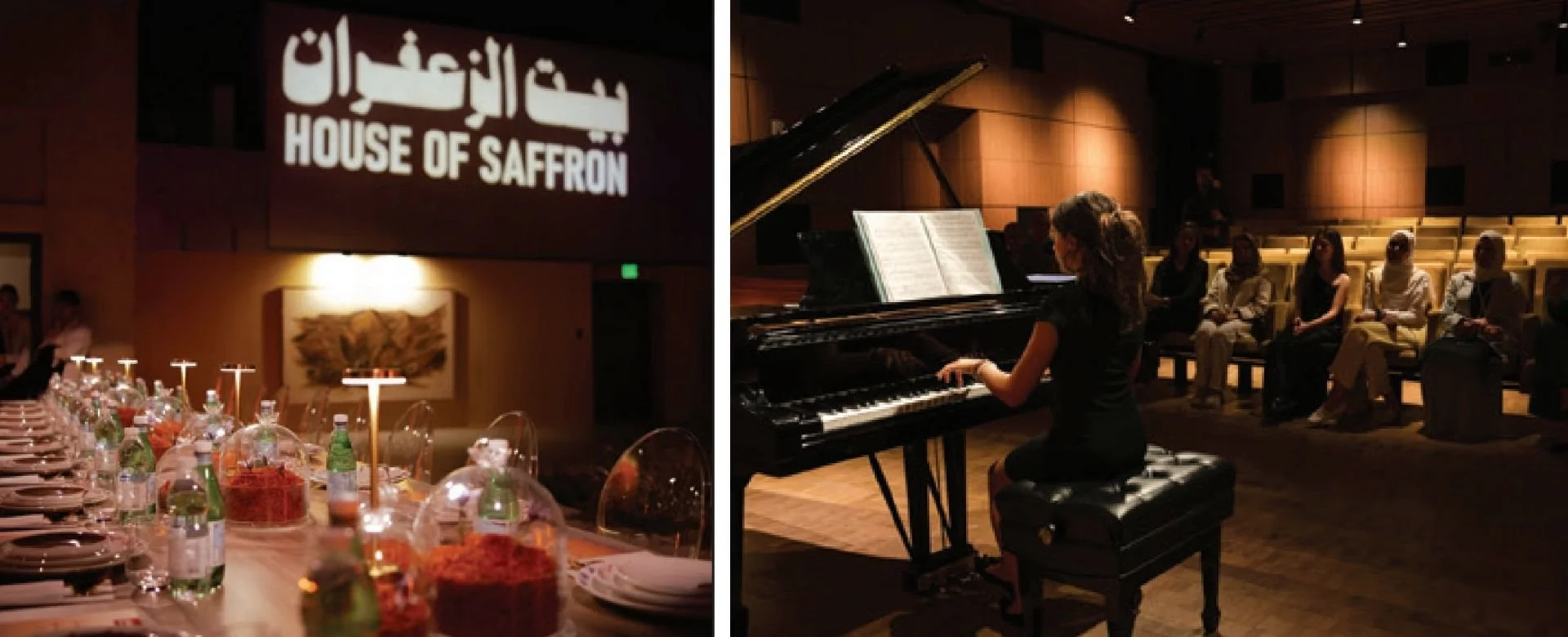 (L-R) House of Saffron at Sikka Art & Design Festival 2025. National Youth Orchestra of Dubai at the iconic Steinway & Sons in New York. © Dubai Culture